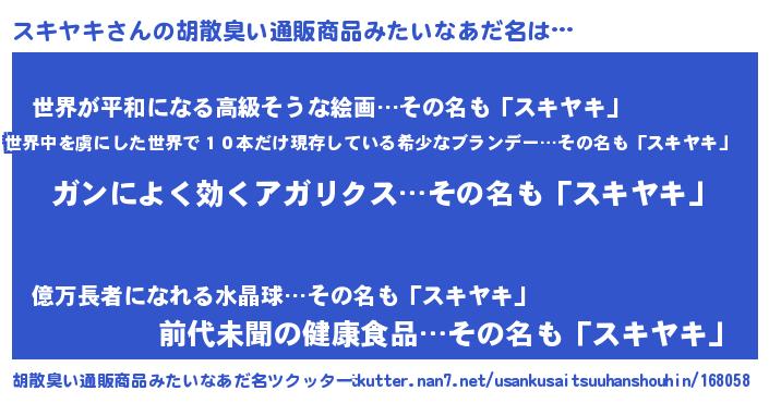 | 意味不明あだ名 | 『自称スキヤキ』『スキヤキフォーエバー』 |