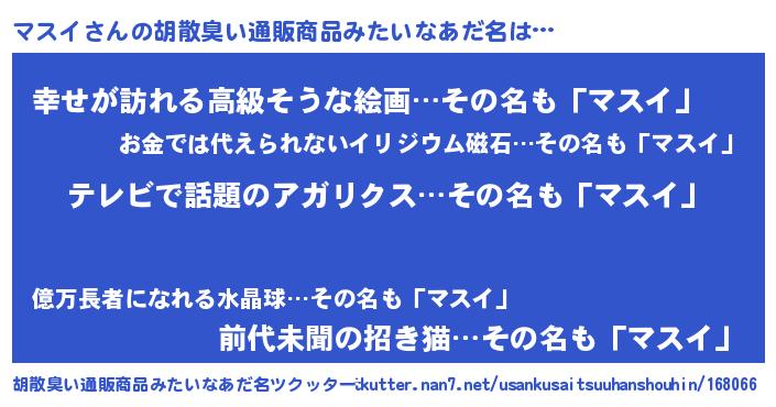 | ヘコむあだ名 | 『豆乳』『マスイ(小並感)』 |