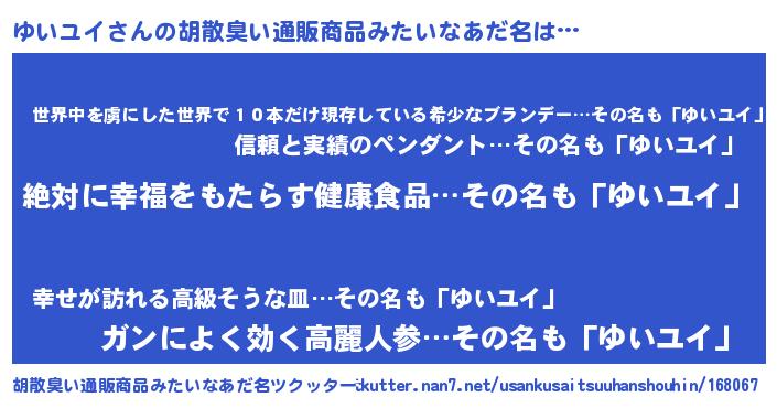 | ヘコむあだ名 | 『ゆいユイ(笑)』『ゆいっ子』 |