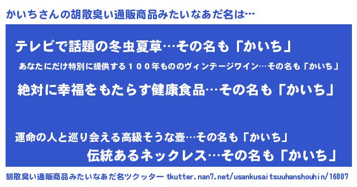 | ヘコむあだ名 | 『かいち(爆)』『かいぷりん』 |