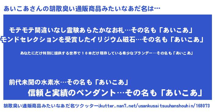 | 意味不明あだ名 | 『住所不定無職あいこあ(86歳)』 |