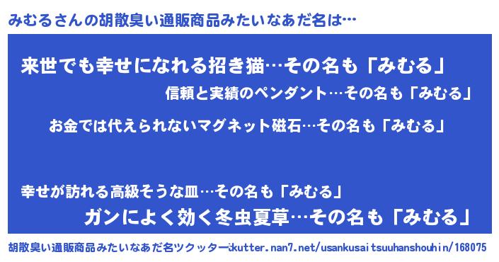| 意味不明あだ名 | 『眠気覚ましガムみむる味』『自称みむる』 |