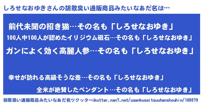 | 意味不明あだ名 | 『自称しろせなおゆき』 |