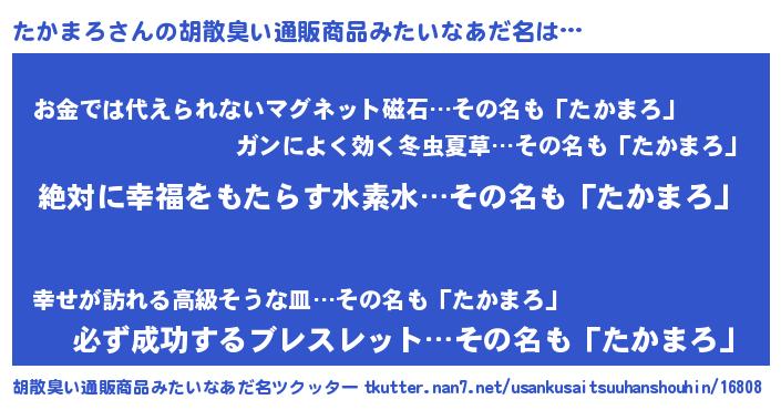| 意味不明あだ名 | 『永久保存たかまろ』『ペロリンたかまろ』 |