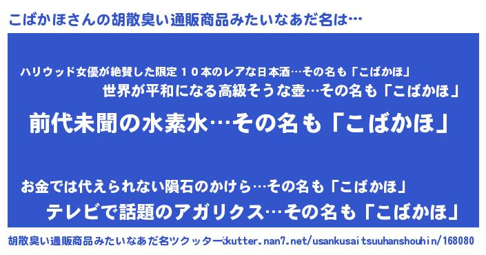 | 意味不明あだ名 | 『永久保存こばかほ』『自称こばかほ』 |