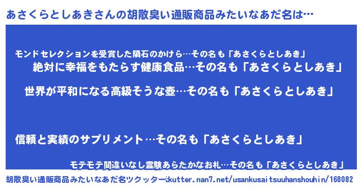 | 意味不明あだ名 | 『あさくらとしあきフォーエバー』 |