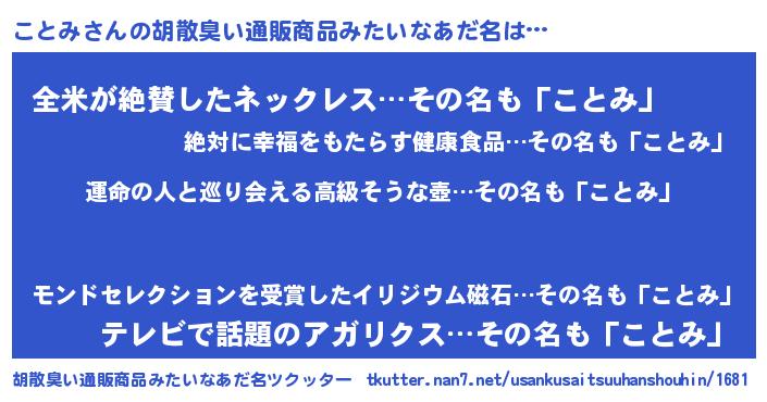 | 意味不明あだ名 | 『ことみフォーエバー』『自称ことみ』 |