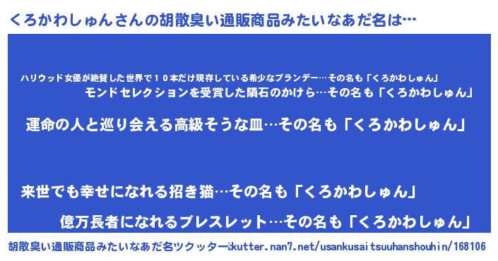 | 意味不明あだ名 | 『くろかわしゅんフォーエバー』 |