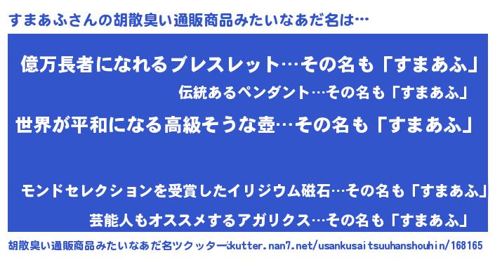| 恥ずかしいあだ名 | 『すまっちょ』『プリティーすまあふ』 |