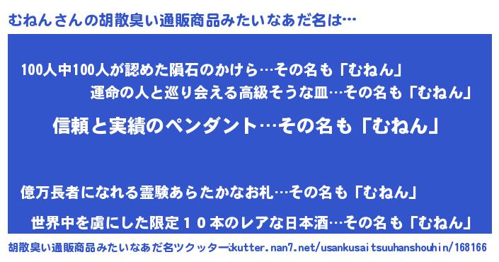 | 意味不明あだ名 | 『めかぶ科むねん属』 |