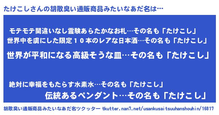| 意味不明あだ名 | 『たけこしフォーエバー』 |