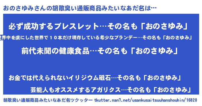 | 意味不明あだ名 | 『永久保存おのさゆみ』『自称おのさゆみ』 |