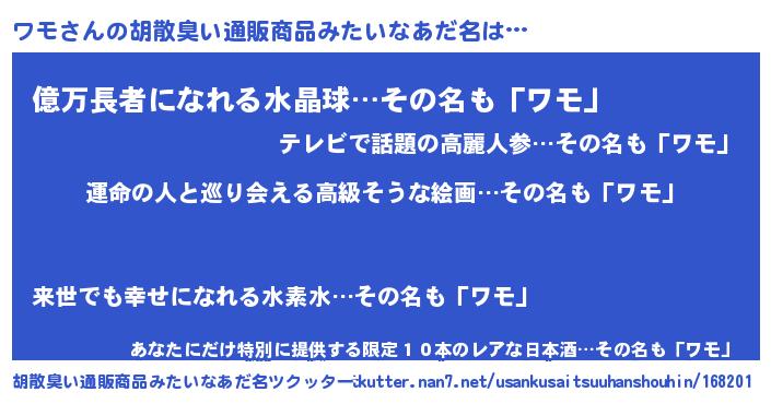 | ヘコむあだ名 | 『酢こんぶ』『ワモにー』 |