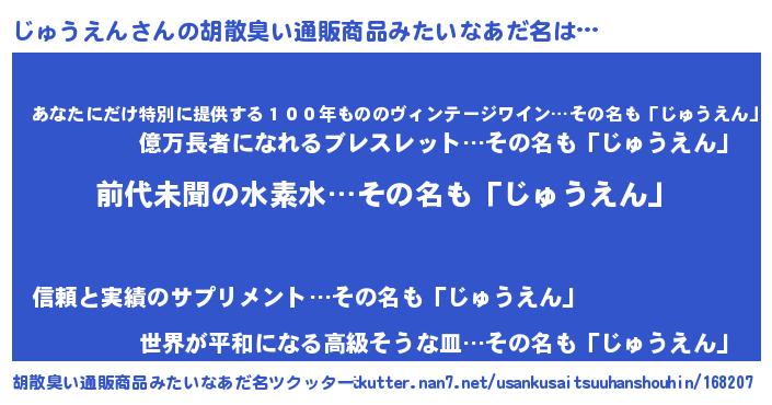 | ヘコむあだ名 | 『じゅうえん(苦笑)』『酢こんぶ』 |