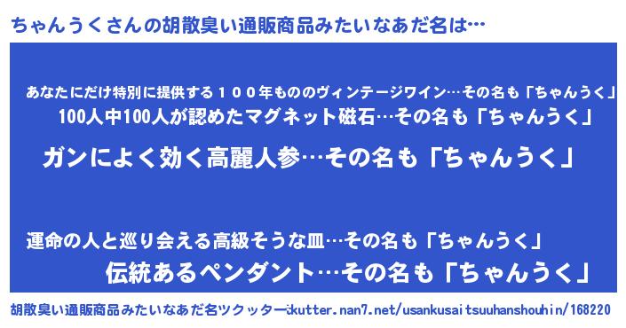 | 意味不明あだ名 | 『自称ちゃんうく』 |