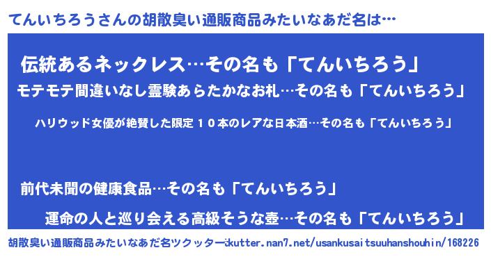 | ヘコむあだ名 | 『てんっ子』『豆乳』『てんっふぃ~』 |