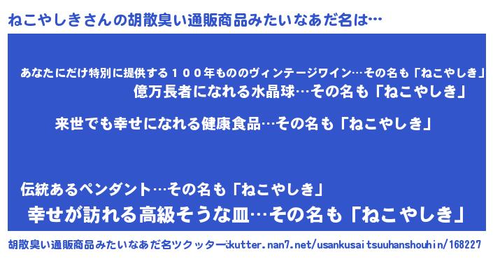 | ヘコむあだ名 | 『ねこやしき(笑)』『牛乳』 |