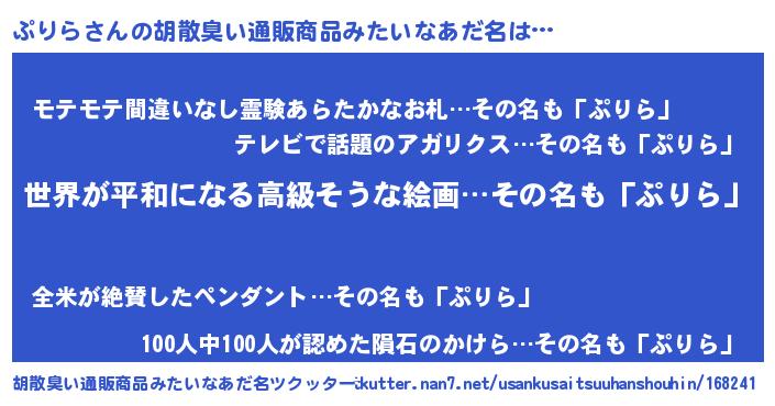 | 意味不明あだ名 | 『ぷりらフォーエバー』『ペロリンぷりら』 |