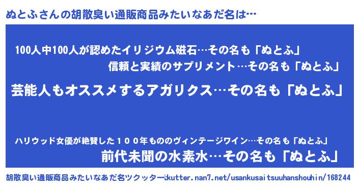| ヒーロー風カッコイイあだ名 | 『最強戦士ヌトフ』『正義の使者ぬとふ』 |