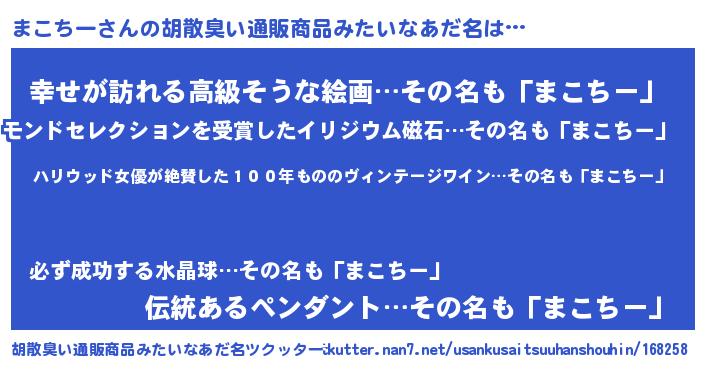 | 意味不明あだ名 | 『住所不定無職まこちー(11歳)』 |
