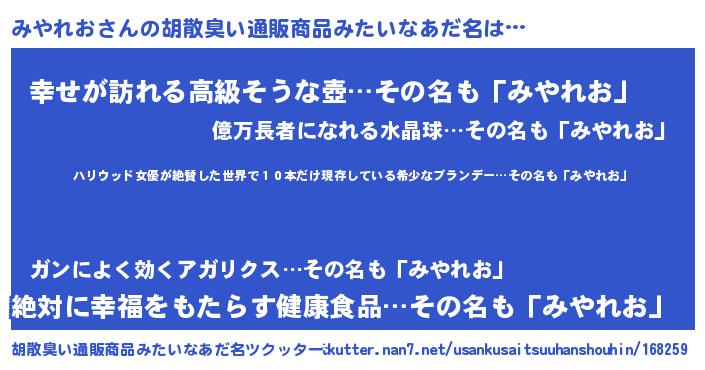 みやれおさんの胡散臭い通販商品みたいなあだ名をツクッター!