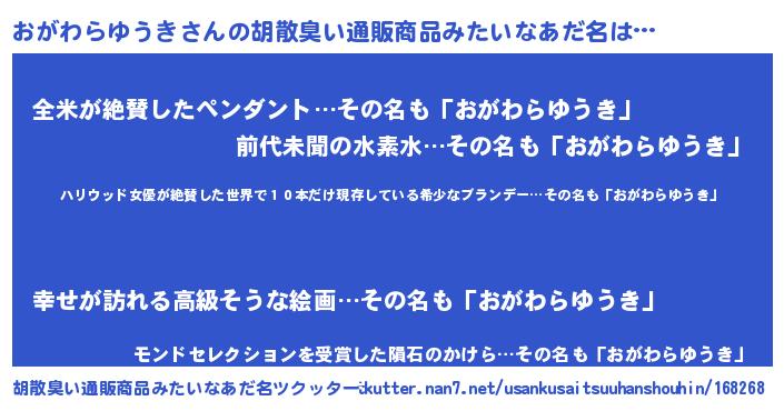 | 意味不明あだ名 | 『住所不定無職おがわらゆうき(91歳)』 |