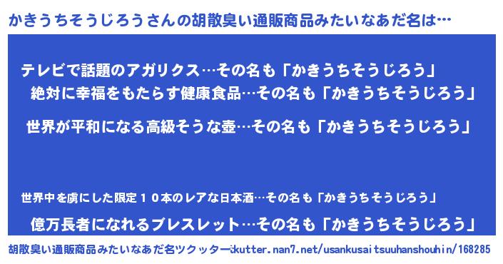 | 男性向けラノベタイトル風あだ名 | 『やはりかきうちそうじろうの青春ラブコメはまちがっている 』 |