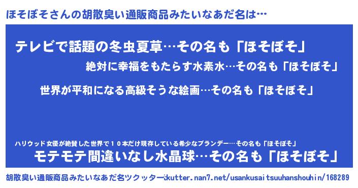 | ヘコむあだ名 | 『豆乳』『ほそもー』『ほそっぺ』 |