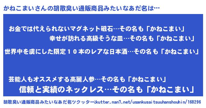 | 意味不明あだ名 | 『住所不定無職かねこまい(47歳)』 |