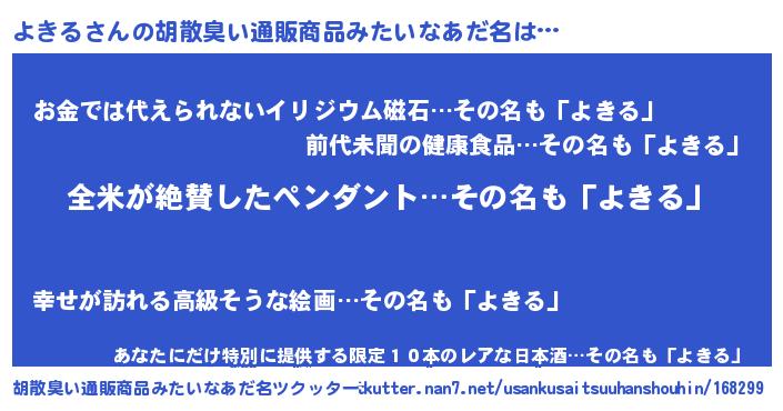 | 意味不明あだ名 | 『とにかく怪しいよきる』 |