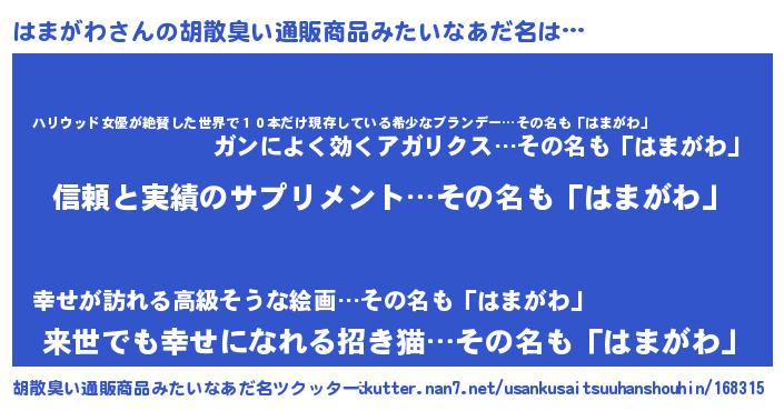 | ヘコむあだ名 | 『はま太郎』『はまがわ(苦笑)』 |