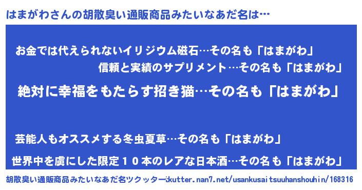 | 意味不明あだ名 | 『永久保存はまがわ』 |