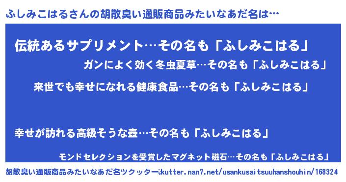 | ヒーロー風カッコイイあだ名 | 『ネオフシミコハル』『銀牙騎士フシ』 |