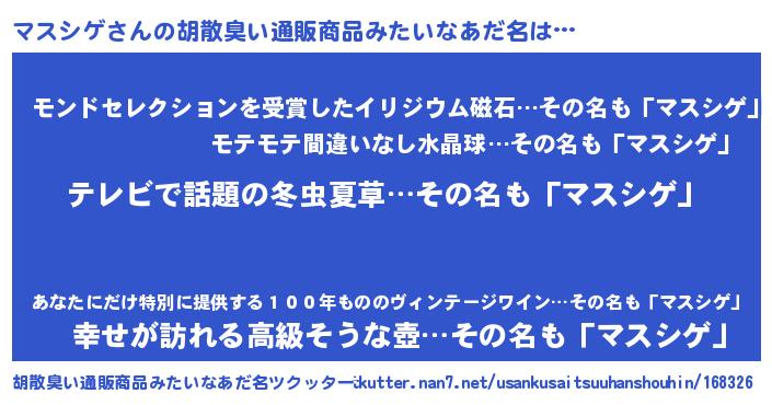 | ヒーロー風カッコイイあだ名 | 『最強戦士マスシゲ』『スーパーマスシゲ』 |