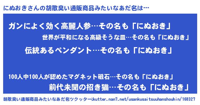 | ポケモン風あだ名 | 『ヒニヌオキ』『ニヌゴンZ』 |