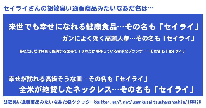 セイライさんの胡散臭い通販商品みたいなあだ名をツクッター!