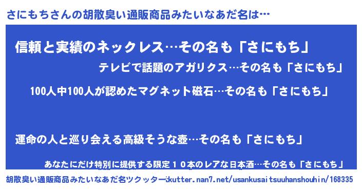 | ヘコむあだ名 | 『さにお』『牛乳』『さにもち(笑)』 |