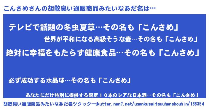 | ヘコむあだ名 | 『こんさめ(笑)』『なまこ酢』 |