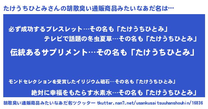 | 意味不明あだ名 | 『とにかく怪しいたけうちひとみ』 |