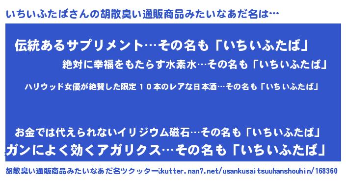 | 男性向けラノベタイトル風あだ名 | 『イチイフタバスレイヤー』 |