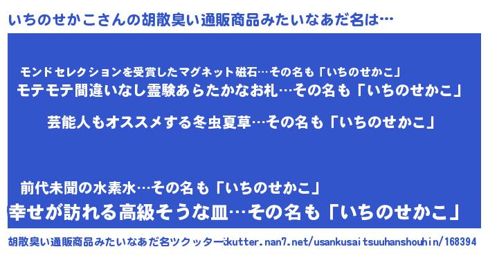 | 意味不明あだ名 | 『自称いちのせかこ』 |
