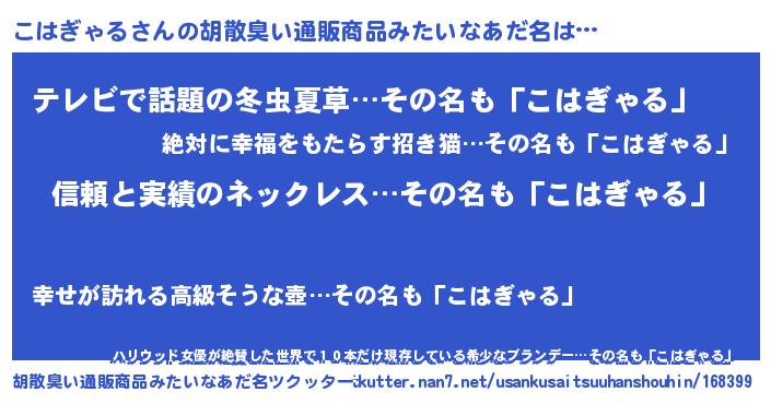| 男性向けラノベタイトル風あだ名 | 『はたらくこはぎゃるさま!』 |
