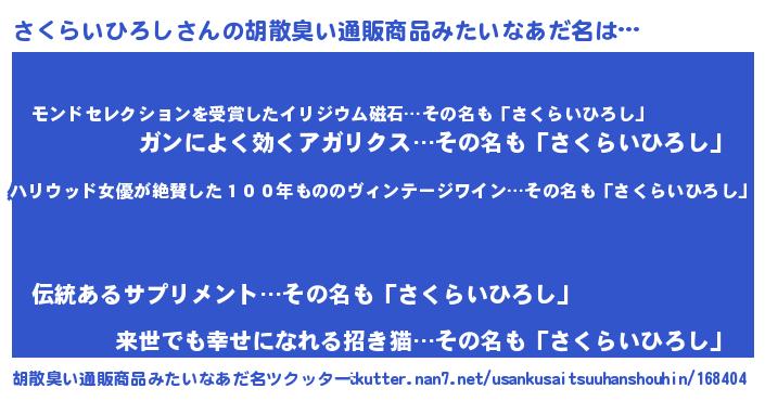 | 意味不明あだ名 | 『住所不定無職さくらいひろし(4歳)』 |