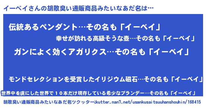 | 男性向けラノベタイトル風あだ名 | 『緋弾のイーベイ』『魔弾の王とイーベイ』 |