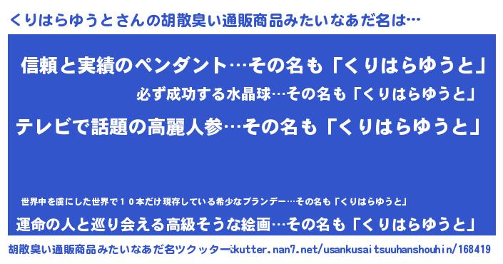 | 恥ずかしいあだ名 | 『クリハラユウトデラックス』『くりちん』 |
