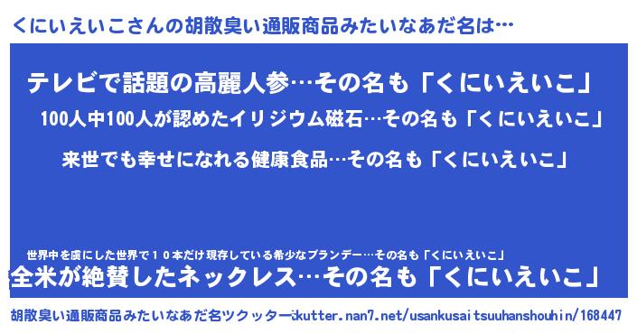 | 意味不明あだ名 | 『永久保存くにいえいこ』 |