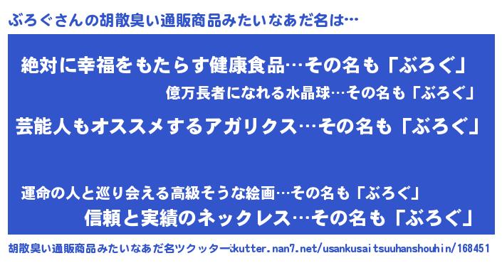 | ヘコむあだ名 | 『ぶろぐ(笑)』『ぶろっぺ』 |
