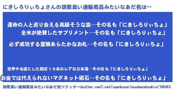 | ヒーロー風カッコイイあだ名 | 『スーパーニキシロリィチョ』 |