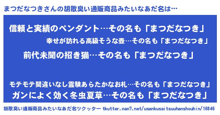 | ポケモン風あだ名 | 『ゼニマツ』『ヒマツダナツキ』 |
