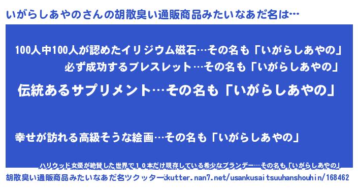 | 意味不明あだ名 | 『とにかく怪しいいがらしあやの』 |
